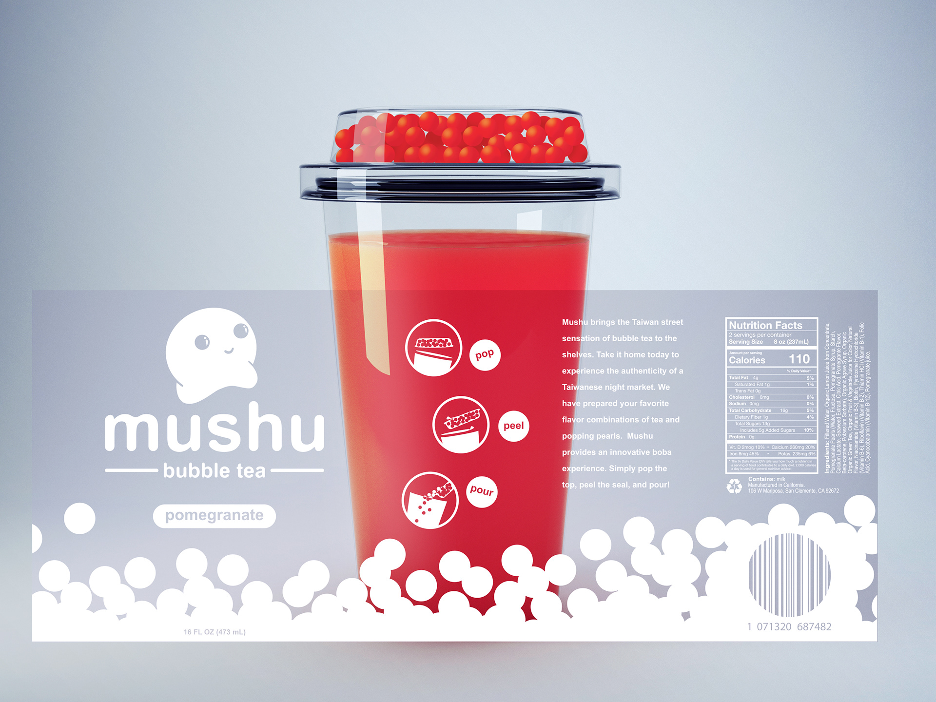 Mushu brings the Taiwan street sensation of bubble tea to the shelves. Experience the authenticity of a Taiwanese night market from your home! Mushu provides an innovative boba experience. Simply pop the top, peel the seal, pour, and enjoy!